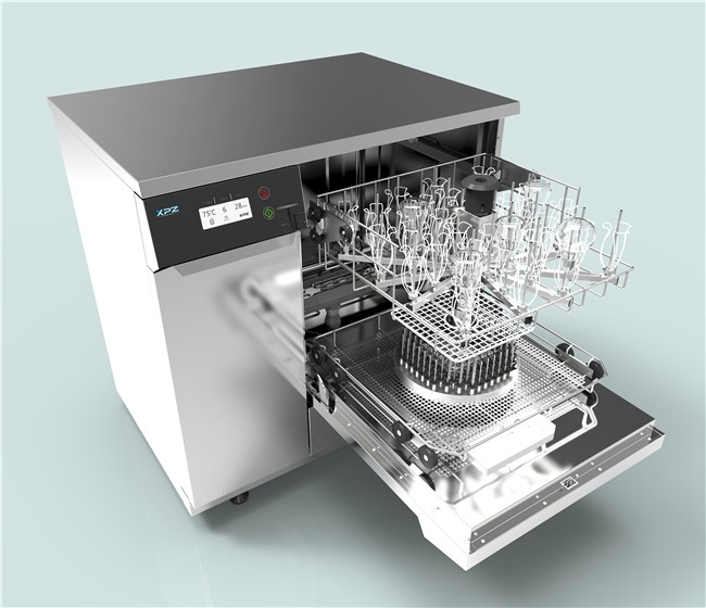 本機(jī)具有全自動(dòng)清洗功能,清洗消毒極為方便,最大程度地保持本機(jī)器與清洗物品的清潔與衛(wèi)生。本機(jī)適合沖洗如:燒杯、試管、量筒、錐形瓶、移液管等實(shí)驗(yàn)室設(shè)備,可根據(jù)客戶需求配備所需清洗架。配有雙層車架,可進(jìn)行噴淋式清洗;前拉式安全門,提高了操作方便性。艙內(nèi)上部蓮蓬式旋轉(zhuǎn)噴頭,無死角設(shè)計(jì),全面均勻清洗各類器皿。每套消毒架都配有噴水柱(最多可置16---32根)使清洗液直接噴進(jìn)待洗容器內(nèi)。