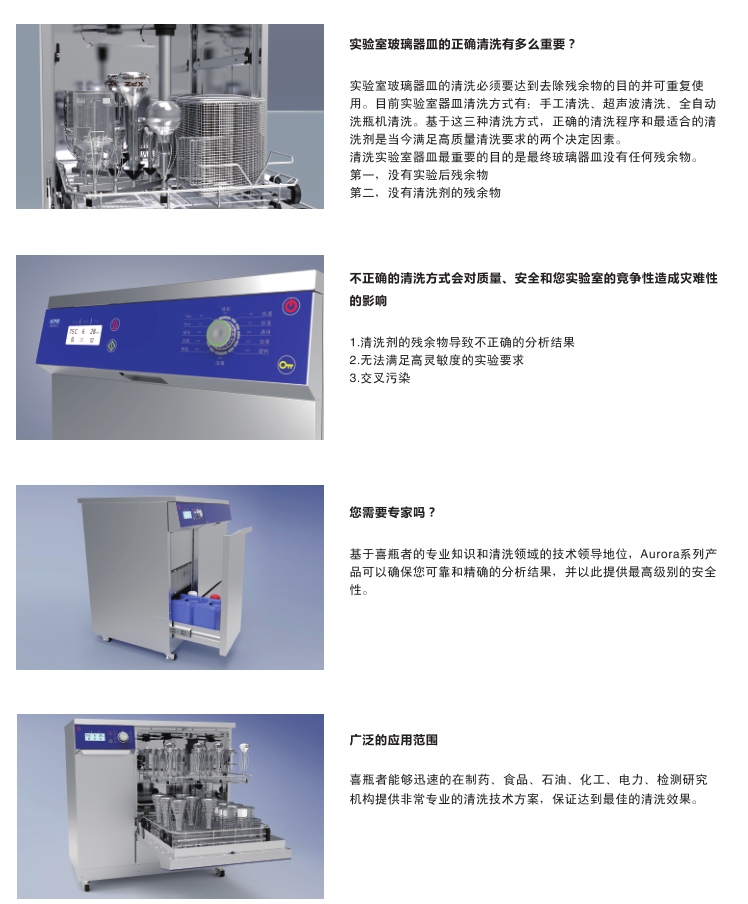 目前喜瓶儀器技術(shù)有限公司轉(zhuǎn)為企業(yè)或公眾服務(wù),作為我們來說,最基本的也是第一要做的是實(shí)驗(yàn)室玻璃器皿的玻璃器皿清洗機(jī)清洗工作。確保給客戶玻璃器皿清洗透徹,無雜質(zhì),無殘留。以前實(shí)驗(yàn)室檢測設(shè)備相對比較粗放,國家的標(biāo)準(zhǔn)也相對較低,實(shí)驗(yàn)室的檢測樣品量較少,手工清洗可以滿足要求。隨著生活水平的提高和公眾健康意識的提高,國家質(zhì)量標(biāo)準(zhǔn)基本與國際接軌。加上食品安全事故頻發(fā),環(huán)境污染嚴(yán)重,企業(yè)競爭的加劇,都在考驗(yàn)著實(shí)驗(yàn)室綜合技術(shù)實(shí)力。高效的玻璃器皿清洗機(jī)清洗后才能指導(dǎo)企業(yè)生產(chǎn)出更高質(zhì)量的產(chǎn)品,才能保證政府監(jiān)管單位對社會提供更好地指導(dǎo)。喜瓶者力求為客戶提供高質(zhì)量產(chǎn)品為客戶帶來便利、為社會環(huán)保做出貢獻(xiàn)